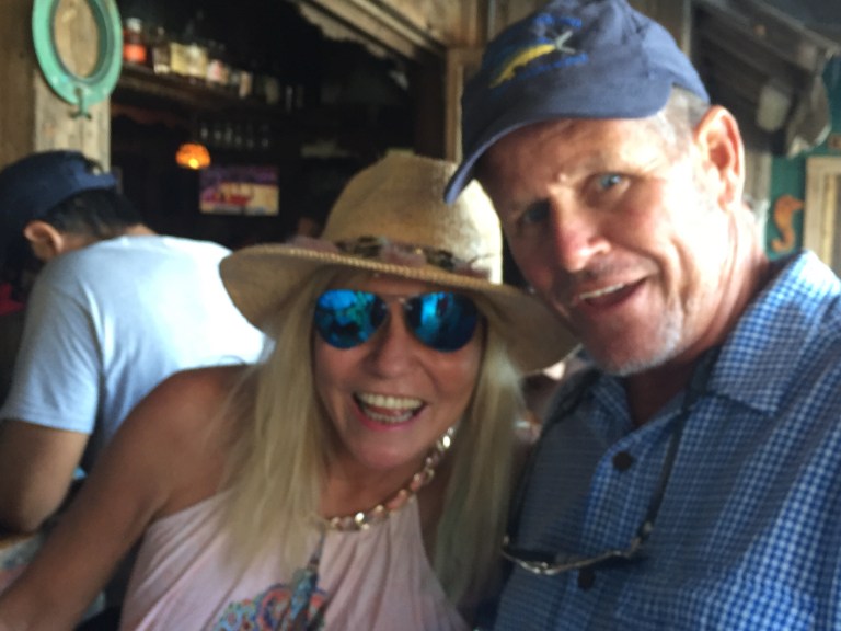 Sunday afternoon after we get the car and stow the wash we set out to find some fun. The beachfront is only a mile away and several bars are hopping along the shore. After a cold one at Mulligans we walk on to the Driftwood Resort, an historic resort built of timber that is still in its original decor, where Mac happens onto an old friend of the family who is sitting at the bar with her son. She’s lived here for years and clearly has the lifestyle down to an art form. He sends a picture quiz out to his sibs in a text and his phone begins to dance. Turns out the younger Mac sibs were thick as thrives with this chick in their teens.