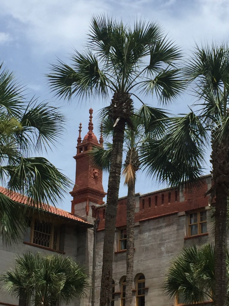 Our arrival into St Augustine found us pretty worn out from three long days with wind in our faces so we tucked in early with the plan to explore over the next few days. We are smitten by this town. First of all the history is rich. Dating back to 1565 it is the oldest continuous settlement in our country. There are historical markers at every turn. We went to Mass on Sunday at the first US parish, The Cathedral of Saint Augustine. Flagler College is a beautiful campus in the heart of the city. It’s main buildings were originally the Flagler Hotel, built by the NYC tycoon Henry Flagler who found this enchanting place and decided to create a winter retreat for other northern millionaires. It is opulent to say the least.