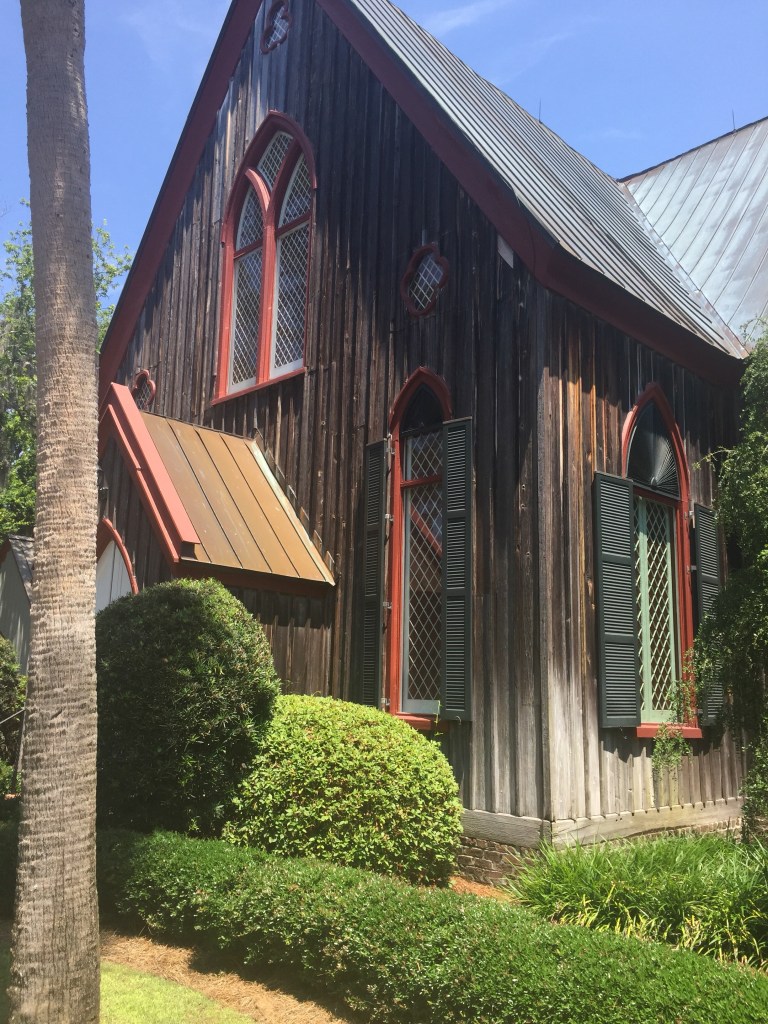 Built in 1857, the church is an all wood structure with boxed pews with latched doors, huge timber beams, arched doors. The guide we were fortunate to have on duty on our brief tour tells us the parishioners paid $10 annually to have their own pew. That’s a lot of money in the 1800’s! The little pew box doors cut down on drafts and kept ladies ankles warm. Two large side balconies were where the family slaves were seated alongside those not able to swing the $10 fee.